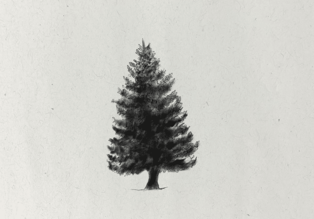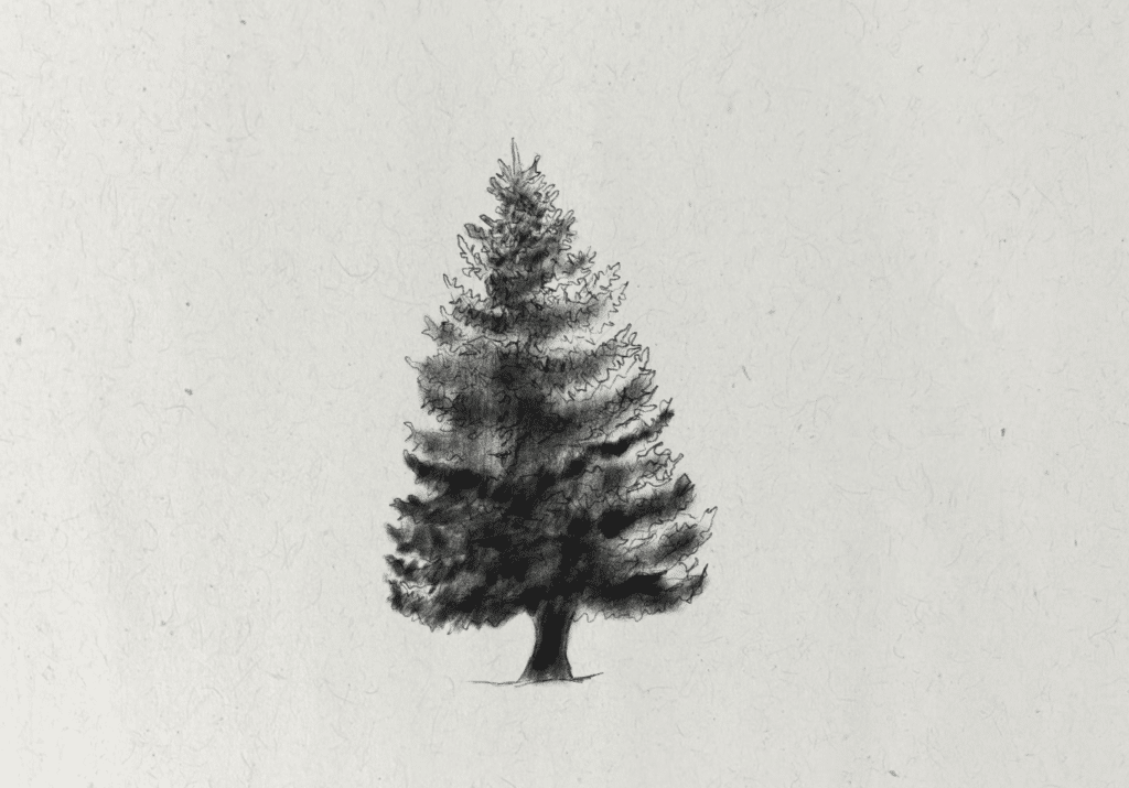 In this tutorial, I’ll show you the method I used to create a fir tree with graphite pencil. I demonstrate how to use line work to create the illusion of lots of individual branches and shading to cast shadows around the needles to quickly build up texture. I’ll also show you how to draw the general shape and form of the tree.