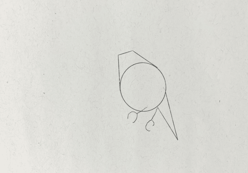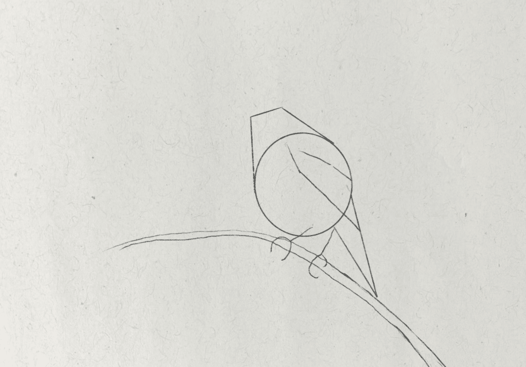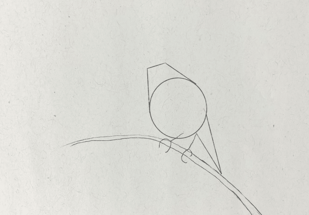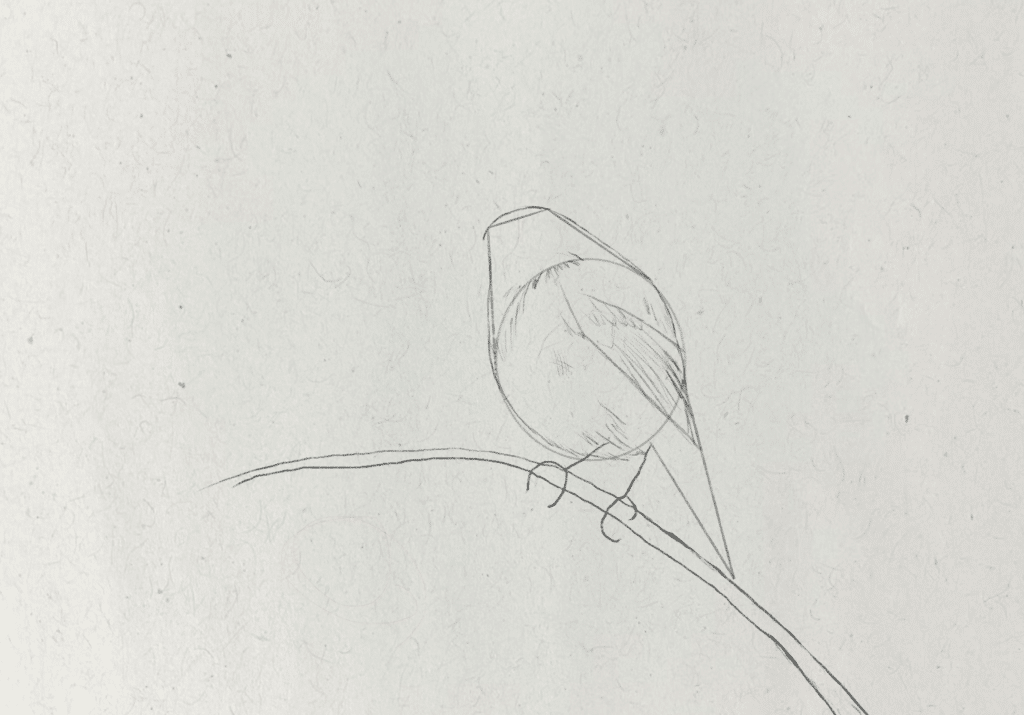 The robin’s tail is long, slightly longer in length than the body, so I drew an irregular triangle shape extending from the back of the oval I drew for the body, tapering off at the tip for the end of the tail.