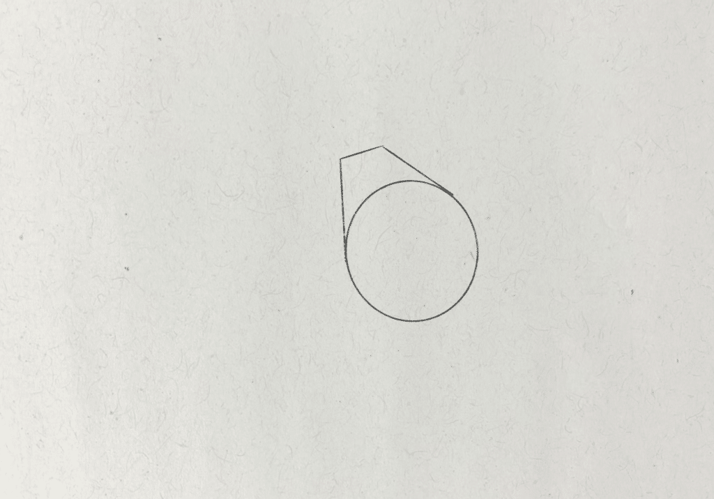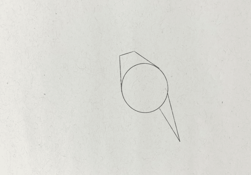 We can find the form of the robin by sketching more basic shapes as guides and understanding the proportions of the body. The head is around half the size of the body and the front of the face sits higher than the back of the head. So, adjoining the oval shape that I drew for the body, I sketch an asymmetrical trapezium shape, slanting at an angle.