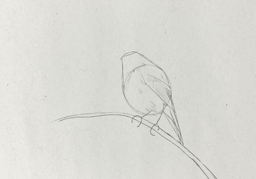 The body broadly follows the oval shape, dipping inwards a little towards the tail. I also lightly hatch some feather texture to show the direction of the feather shapes.