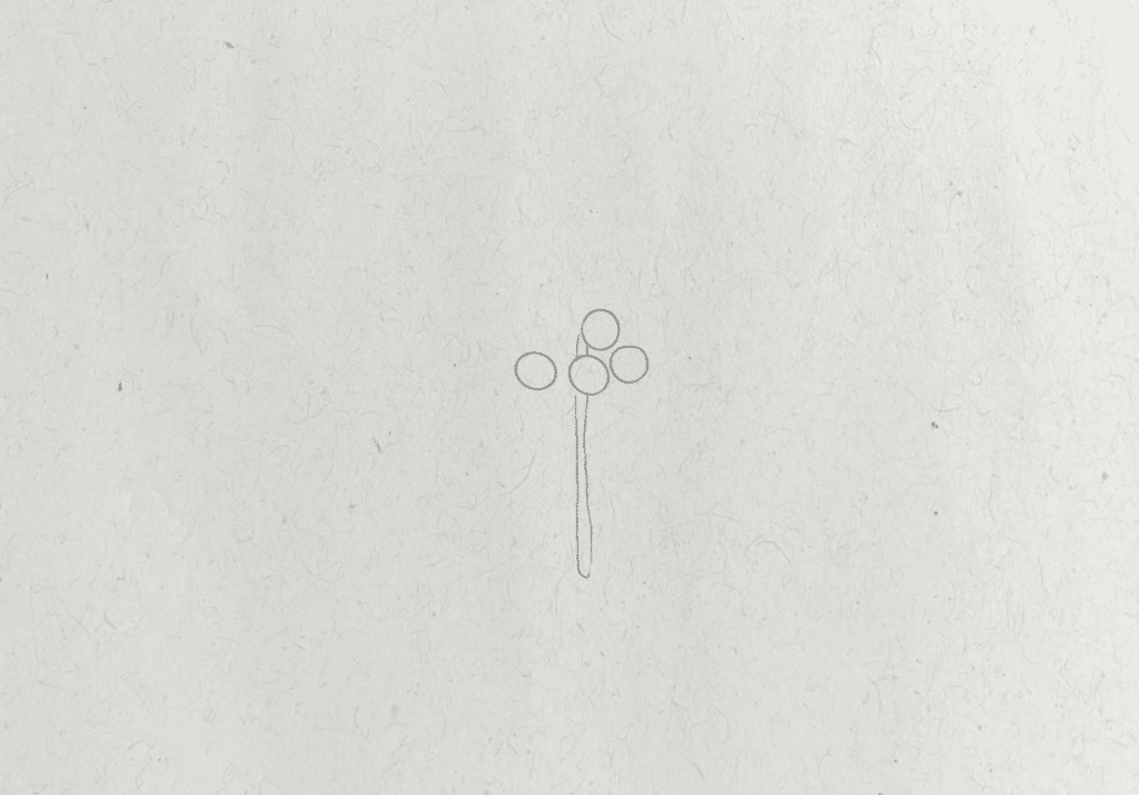 I then draw four berries, closely clustered together at the top of the stem. These berries appear as simple circles. I also erased the small section of stem that is overlapping the berry.